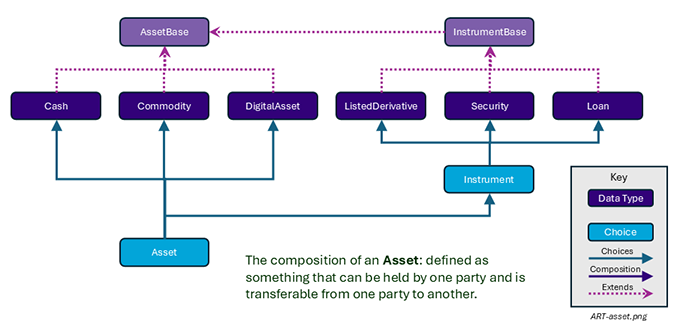 CommodityProductDefinition. - DigitalAsset: An Asset that exists only in digital form, eg Bitcoin or Ethereum; excludes the digital representation of other Assets.