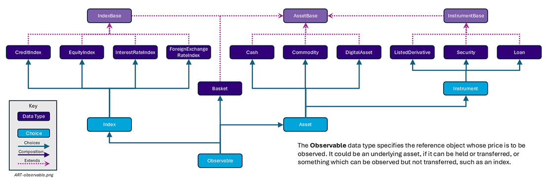 Each of the choice values are defined as data types within the model and each also extends a common base type